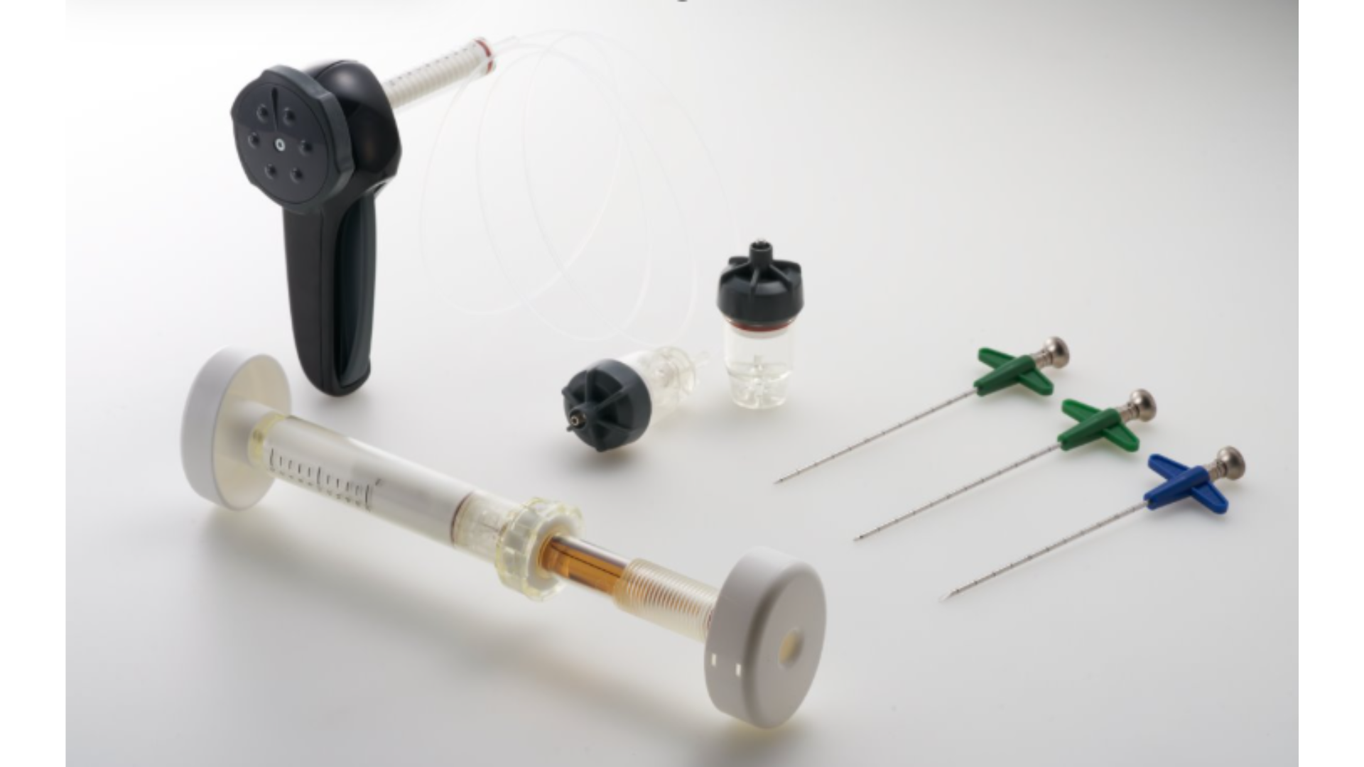 滅菌済みシリンダー容器内に粉末ポリマーと